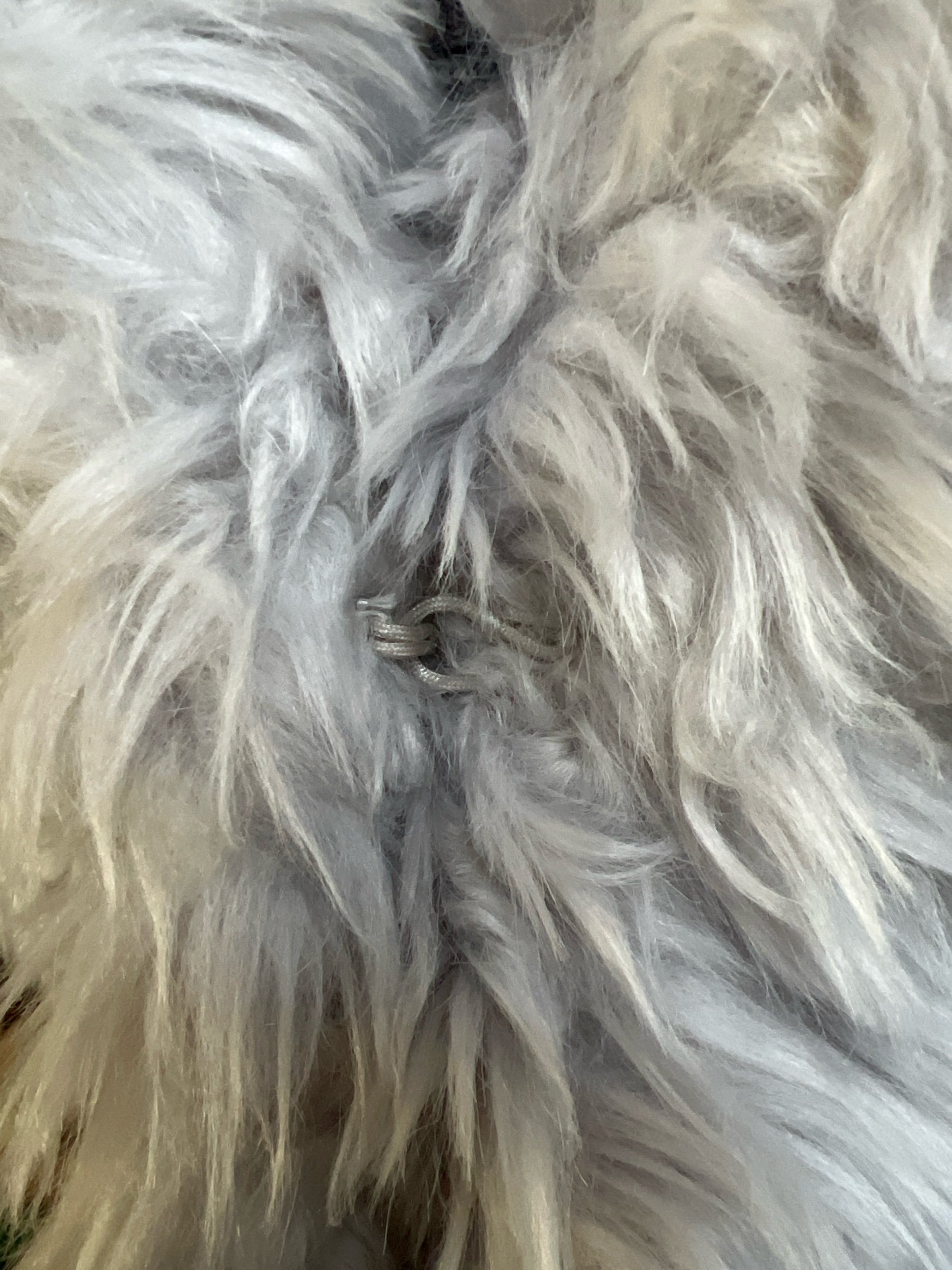 Brand new, never worn aside from trying it on. Eggshell / gray’ish, Its elegant hue makes it a versatile addition to any winter wardrobe.