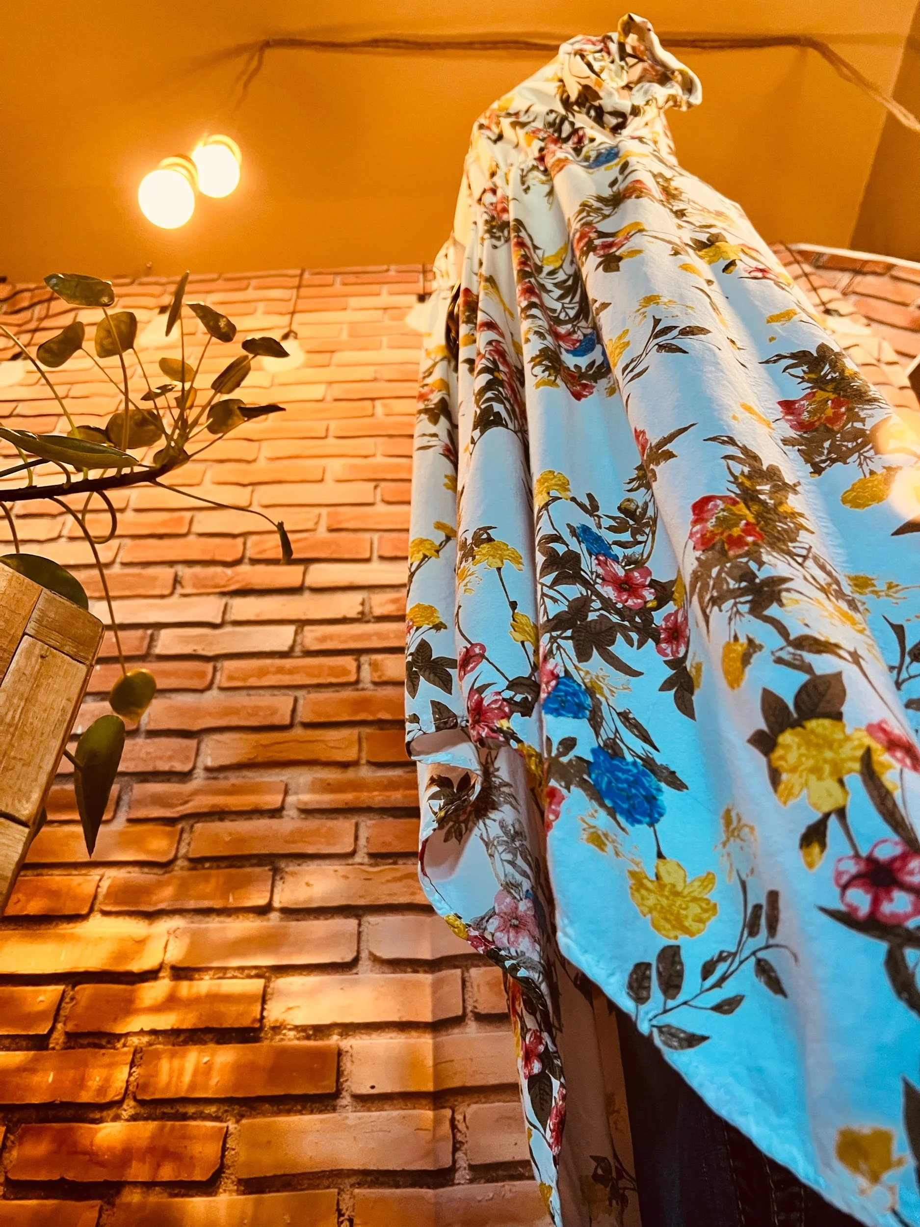 • Fabric: Lightweight gauze cotton blend, soft + breathable