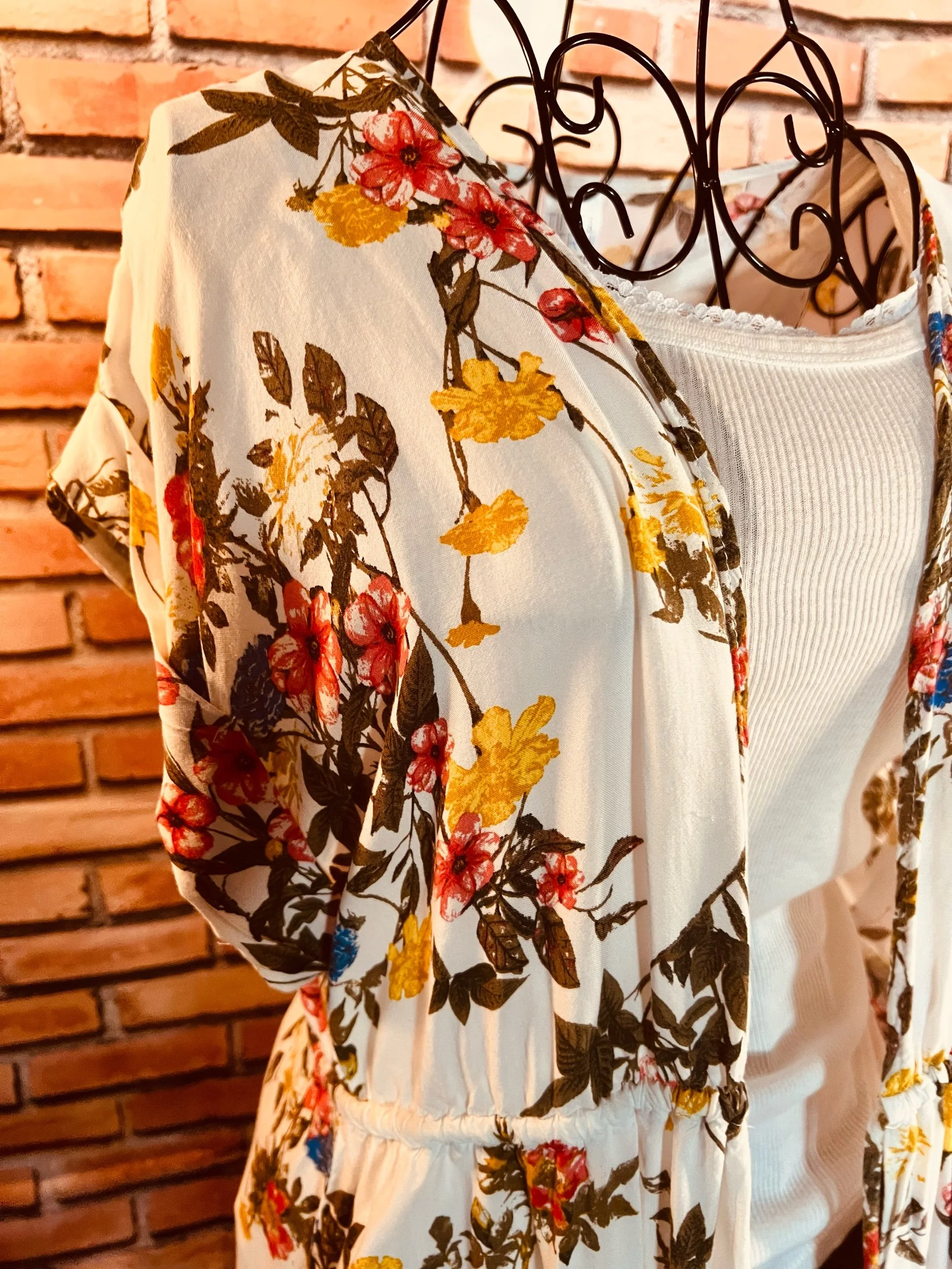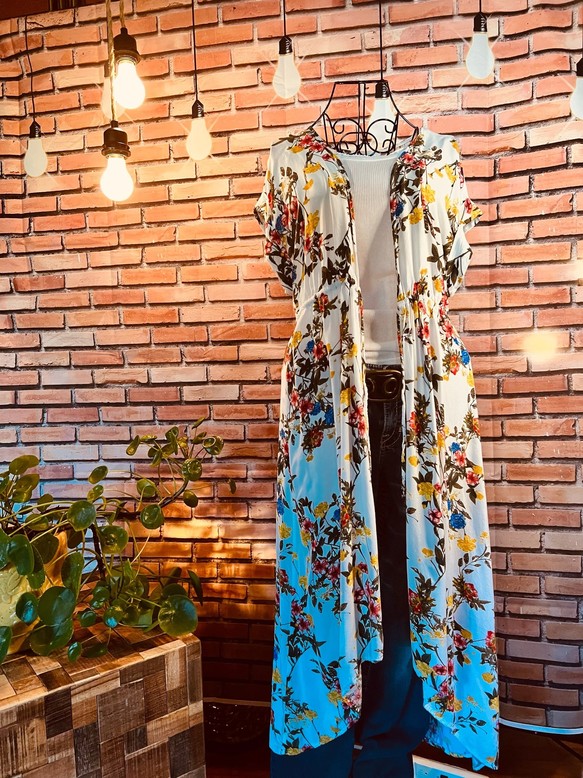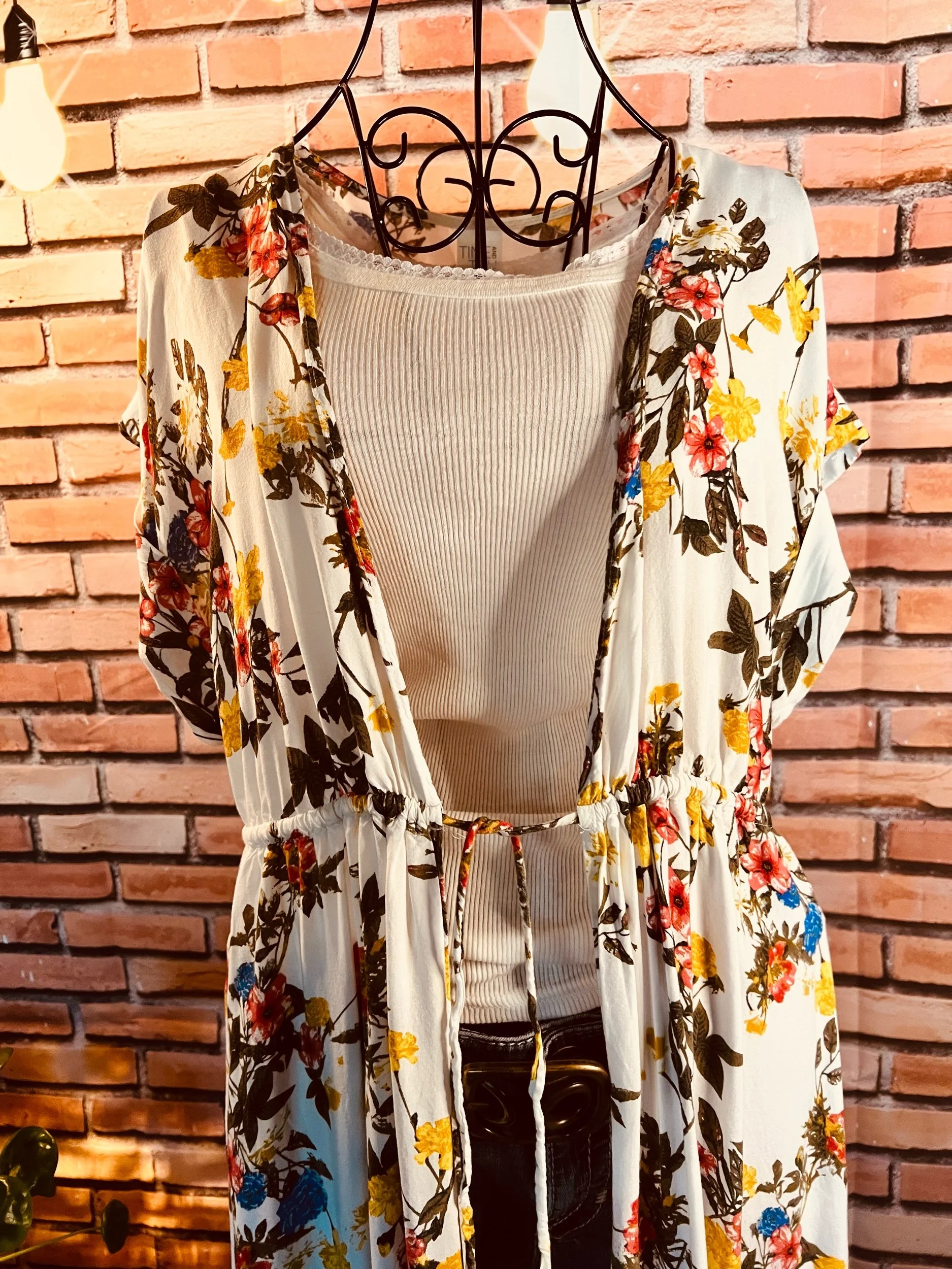 • Details: Open front w/ tie waist, airy + slinky fabric, perfect for layering