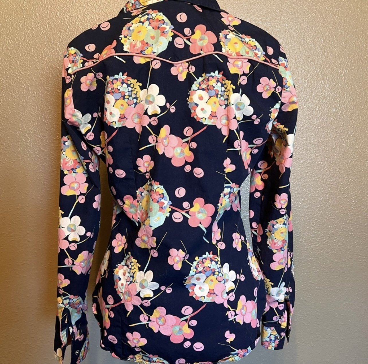 Fall just called—it wants this shirt back. A western classic with a glow-up: Wrangler nailed it with rich fall tones, a faint green Lurex shimmer (not disco, just cowboy cool), and those mother-of-pearl snaps.