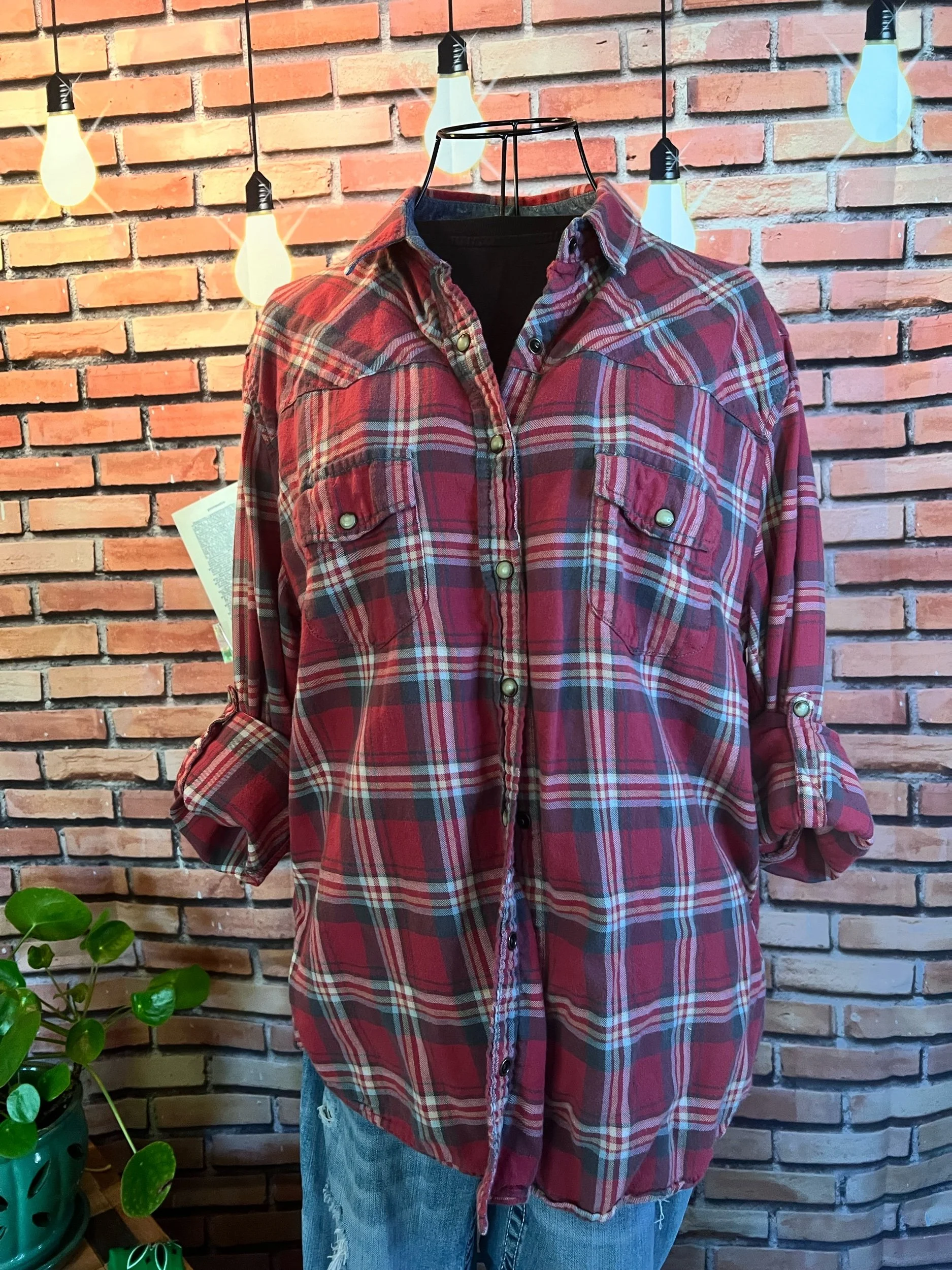 Classic shape, rebel fit. This red-and-black plaid flannel by Passport hits that sweet spot between soft and structured — cozy midweight fabric with a flattering, formfitting cut.