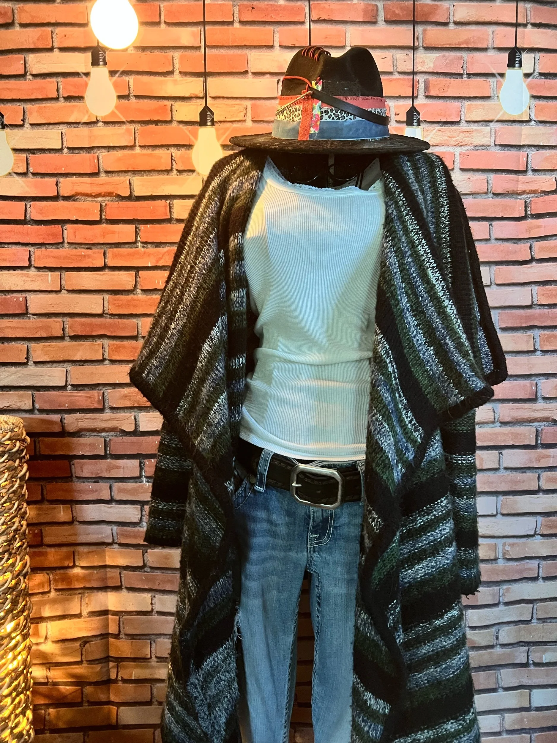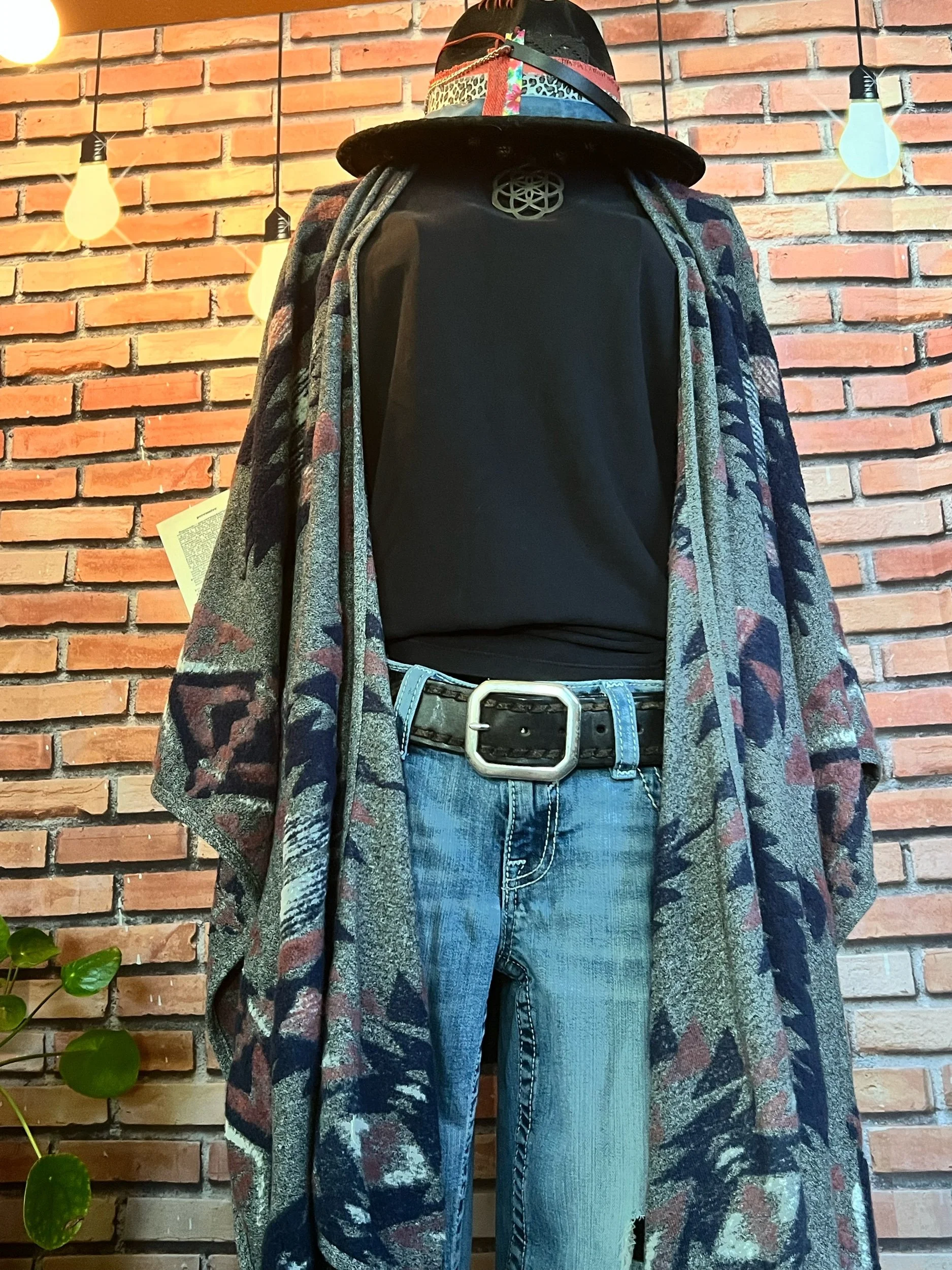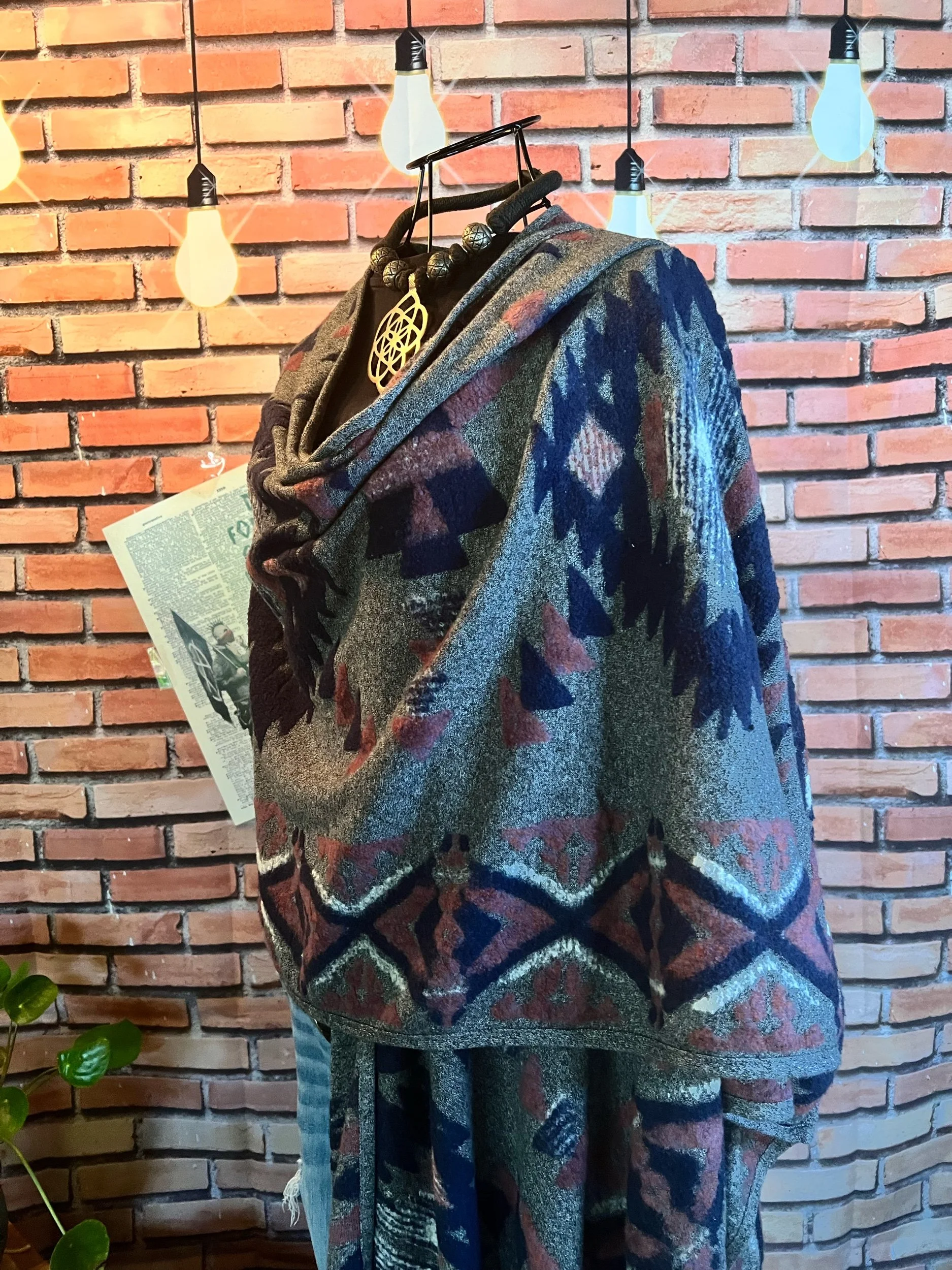 Bohemian wanderer meets roadside philosopher. Soft as a hug, dramatic as a good exit, and woven with desert-toned geometry that says “yes, I read vibes for a living.”