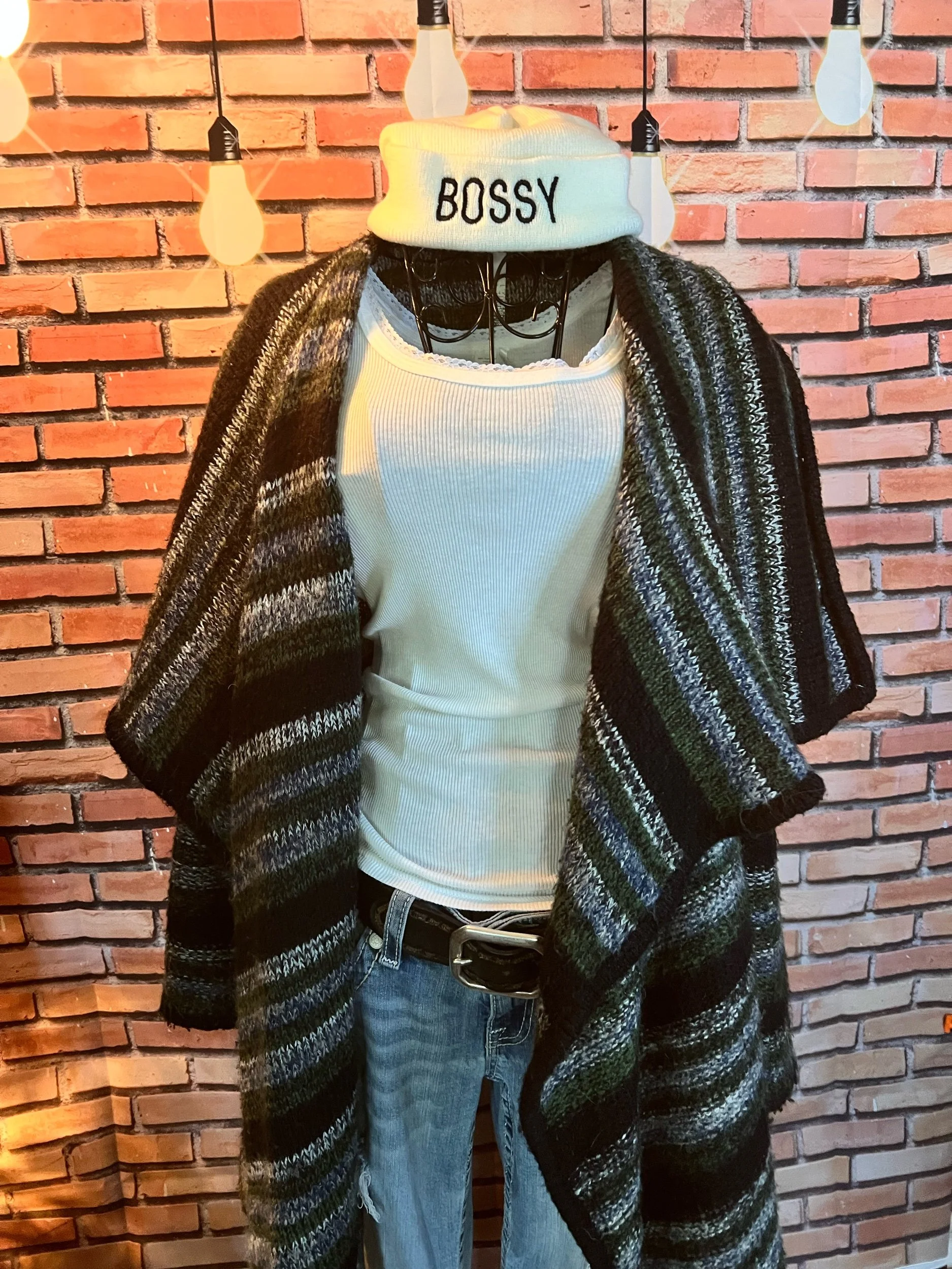 The “I read poetry, fix motorcycles, and leave lipstick on coffee mugs” kind of poncho.